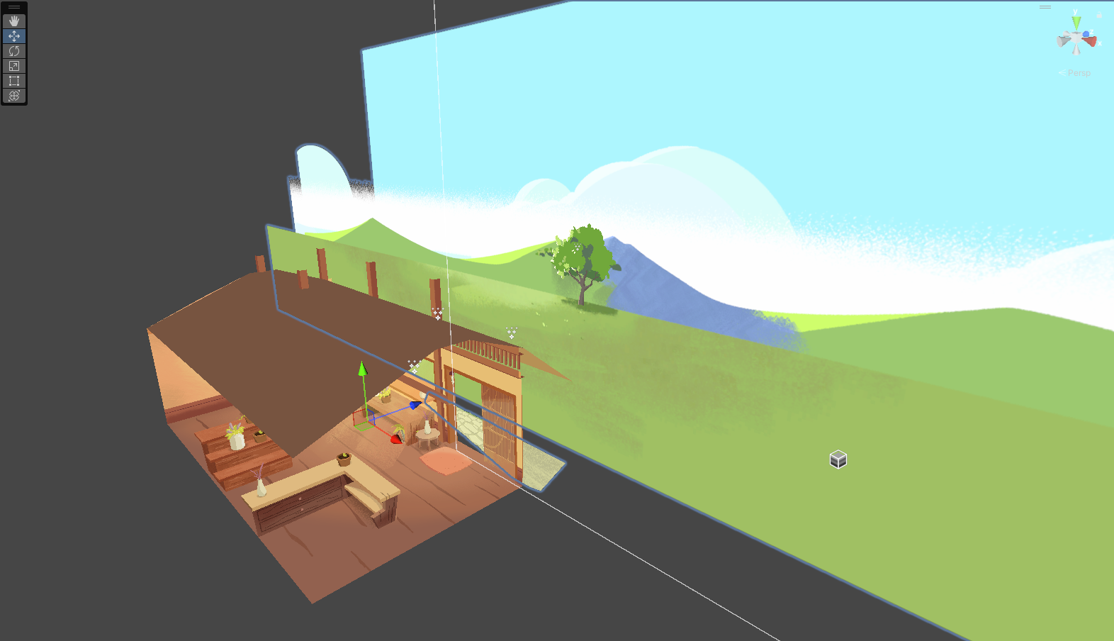 Initially, we aren’t sure between using 2D or 3D for the background. First of all, one of our aesthetic pillars is "hand-painted". So our problem is that 2D assets are hard to reuse for the perspective scene, but 3D is harder and has a higher cost to make it combine with 2D characters, so I quickly did a mockup of both 2D and 3D styles to find pros and cons of each one. Then, we decided to use 3D because we could play a lot more with camera movement and cost efficiency. We use unlit material because it's easy to control the aesthetics of lighting and shadow.